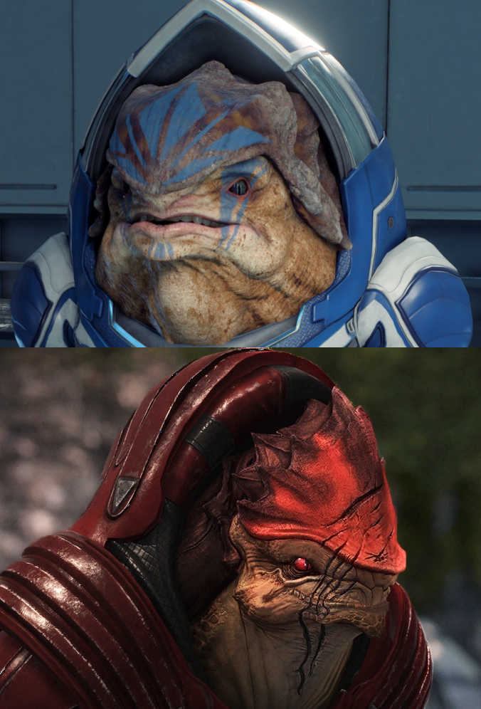 KROGAN. The krogan evolved in a hostile and vicious environment. Until the invention of gunpowder weapons, "eaten by predators" was still the number one cause of krogan fatalities. Afterwards, it was "death by gunshot".When the salarians discovered them, the krogan were a brutal, primitive species struggling to survive a self-inflicted nuclear winter. The salarians culturally uplifted them, teaching them to use and build modern technology so they could serve as soldiers in the Rachni War.Liberated from the harsh conditions of their homeworld, the quick-breeding krogan experienced an unprecedented population explosion. They began to colonize nearby worlds, even though these worlds were already inhabited. The Krogan Rebellions lasted nearly a century, only ending when the turians unleashed the genophage, a salarian-developed bioweapon that crushed all krogan resistance.The genophage makes only one in 1,000 pregnancies viable, and today the krogan are a slowly dying breed. Understandably, the krogan harbor a grudge against all other species, especially the turians.