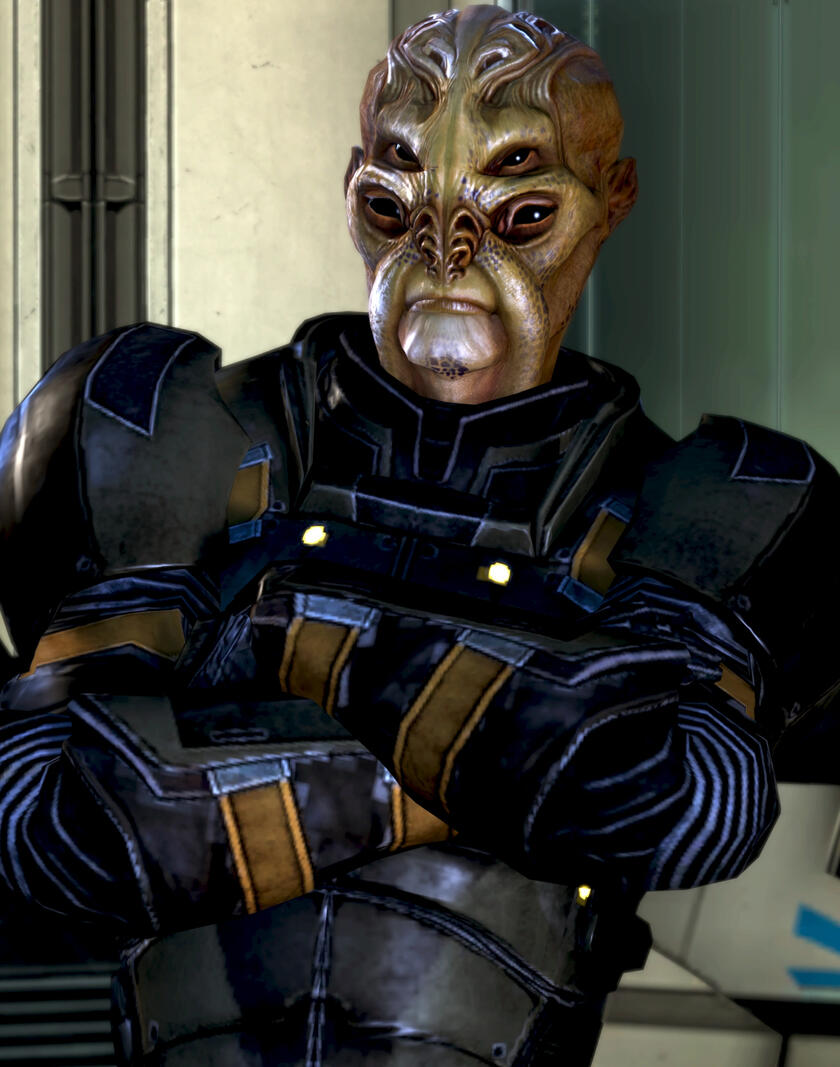 TURIAN. Turians typically stand over six feet tall [180cm], have two long, proportionately thick fingers and an opposable thumb on each hand, each tipped with talons, and a set of mandibles around their mouths. The most distinguishing feature of turians is their metallic carapace, which contains trace amounts of thulium. Turian features are avian, making them resemble humanoid birds or raptors. Unlike most Earth avian creatures, turians are viviparous and give birth to live young. Turians are also recognisable by their voices, which have a distinctive flanging effect. Males and females do not differ greatly in terms of physical appearance, but female turians lack the sweptback cranial crests of their male counterparts and possess larger, cat-like eyes.Known for their militaristic and disciplined culture, the turians were the third race to join the Citadel Council. They gained their Council seat after defeating the hostile krogan for the Council during the Krogan Rebellions. The turians then filled the peacekeeping niche left by the once-cooperative krogan, and eventually gained a Council seat in recognition of their efforts. The turians have the largest fleet in Citadel space, and they make up the single largest portion of the Council's military forces.As their territory and influence has spread, the turians have come to rely on the salarians for military intelligence and the asari for diplomacy. Despite a somewhat colonial attitude towards the rest of the galaxy, the ruling Hierarchy understands they would lose more than they would gain if the other two races were ever removed.Turians come from an autocratic society that values discipline and possesses a strong sense of personal and collective honor. There is lingering animosity between turians and humans over the First Contact War of 2157, which is known as the 'Relay 314 Incident' to the turians. Officially, however, the two species are allies and they enjoy civil, if cool, diplomatic relations.