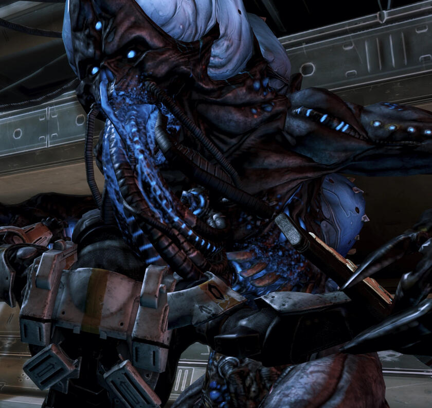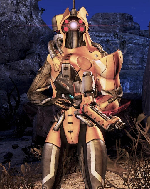 RACHNI. The rachni are an extinct insect-like species from the planet Suen that threatened Citadel space roughly two thousand years ago during the Rachni Wars. Intelligent and highly aggressive, the spacefaring rachni were driven to expand and defend their territory. They were eventually defeated and completely eradicated by the krogan, who had been uplifted by the salarians for their combat prowess and physical resilience to directly confront the rachni in the harsh environments of the rachni worlds. The accidental discovery of the rachni led to the Citadel races curbing their rapid expansion, in fear of being plunged into another galactic war.The rachni have numerous specialized forms. As a whole they have chitinous exoskeletons, four limbs for walking, and bleed a green fluid. The number of eyes, arms, and tentacle-claws vary depending on the subtype. On most rachni forms their "mouth" consists of a "beak" made up of five mandible-like protrusions.