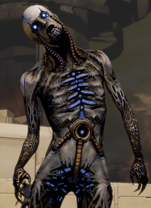 ZHA'TIL. The zha'til were a synthetic race that existed at the time of the Protheans. They originated when a race known as the zha implanted themselves with symbiotic AI technology to enhance their intelligence in order to survive as their homeworld became inhospitable. When the Reapers arrived, they subjugated the AIs, known as zha'til, who then seized control of the bodies of their masters and altered their genetic material at the deepest level, transforming the zha into synthetic monsters and their offspring into slaves. The zha'til proceeded to multiply into "mechanical swarms" that "blotted out the sky". With no other recourse, the Protheans sent the star of the zha's home system into supernova, destroying the zha'til entirely.