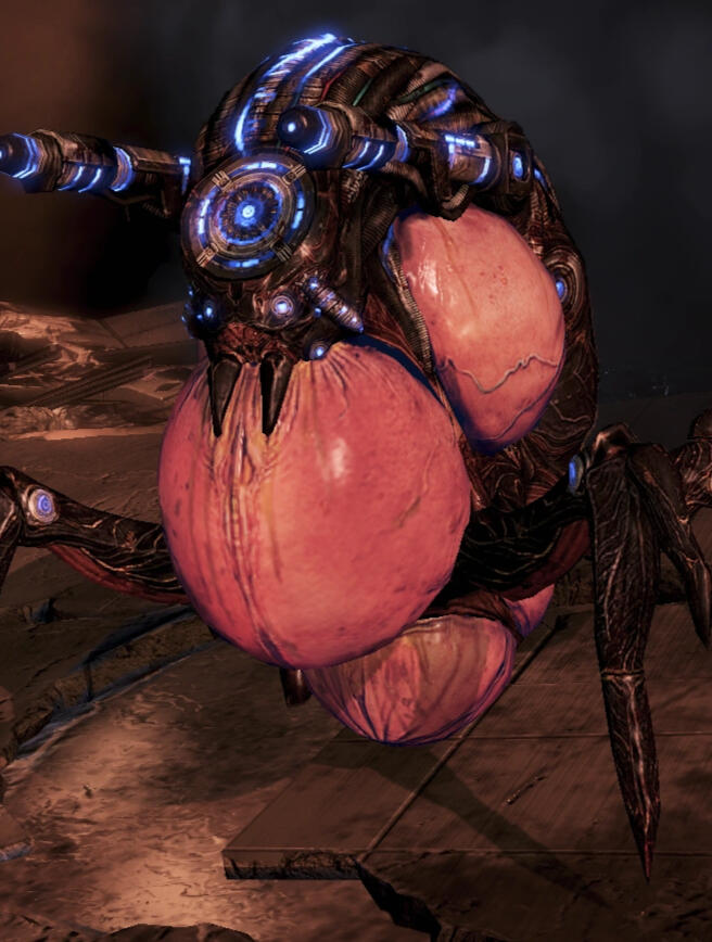 RACHNI QUEEN. Queens are the largest and most intelligent of the rachni. Queens lead the rachni and provide guidance for the rest of their species.