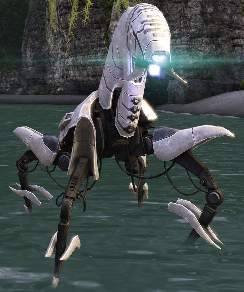 GETH ARMATURE. A mobile anti-vehicle and anti-personnel unit employed in high-risk areas, often dropped directly from a Geth Dropship. The unit consists of a quadruped "tank" or "walker" and is usually accompanied by Geth Rocket Troopers. Armed with superior firepower and a Siege Pulse assault cannon, this geth is easily a match for the armored vehicles of other races. Its main armament is deadly but slow to recharge, but the Geth Armature compensates by knocking down infantry with a smaller secondary weapon. Armatures are sentient, synthetic lifeforms capable of independent thought, learning and action. When inactive, Armatures fold into a compact state, allowing them to be packed into containers, or place themselves in small spaces. This feature, combined with their armaments, makes Armatures perfect for garrison forces or for ambushes.