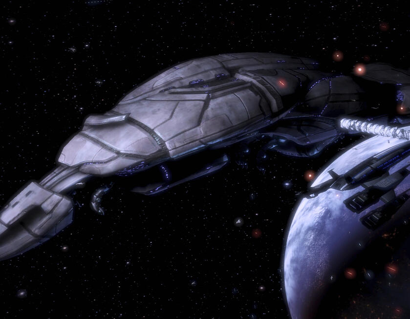 GETH DREADNOUGHT. Due to the nature of geth society, that they do not rely on an economic system and require only the mining materials found within Rannoch's asteroids, their only impediment to constructing a fleet capable of wiping out organic life – should that prove to be their intent – is the speed at which they can build it. Geth dreadnoughts, massive flagships falling outside the purview of Citadel regulations and constraints, make the geth armada a force to be reckoned with. It is 30% larger than a Systems Alliance dreadnought, and utilizes more expensive and energy-demanding ultraviolet anti-fighter lasers instead of the less effective but cheaper infrared anti-fighter lasers deployed by the warships of most organic races.